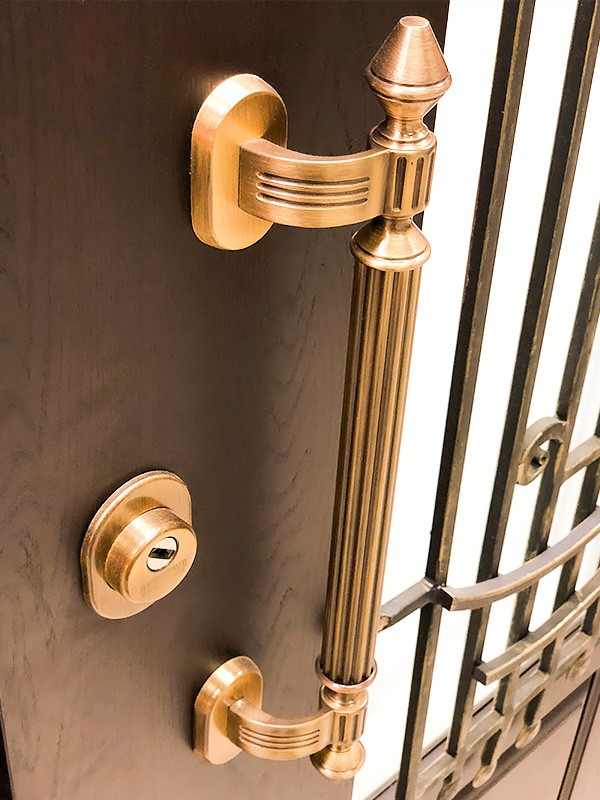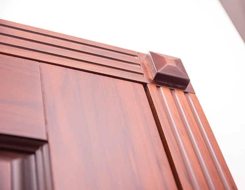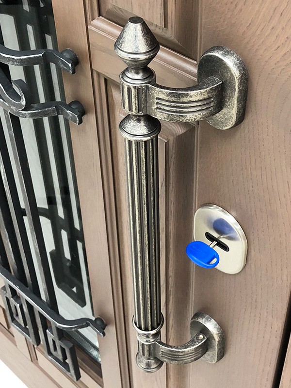 — панель изготовленна из массива дуба. Одной из главных особенностей панелей из массива дуба является их натуральность. Они не содержат никаких синтетических материалов и не выделяют вредных веществ. Дуб обладает высокой износостойкостью и долговечностью, что делает его идеальным материалом для отделки входной двери.