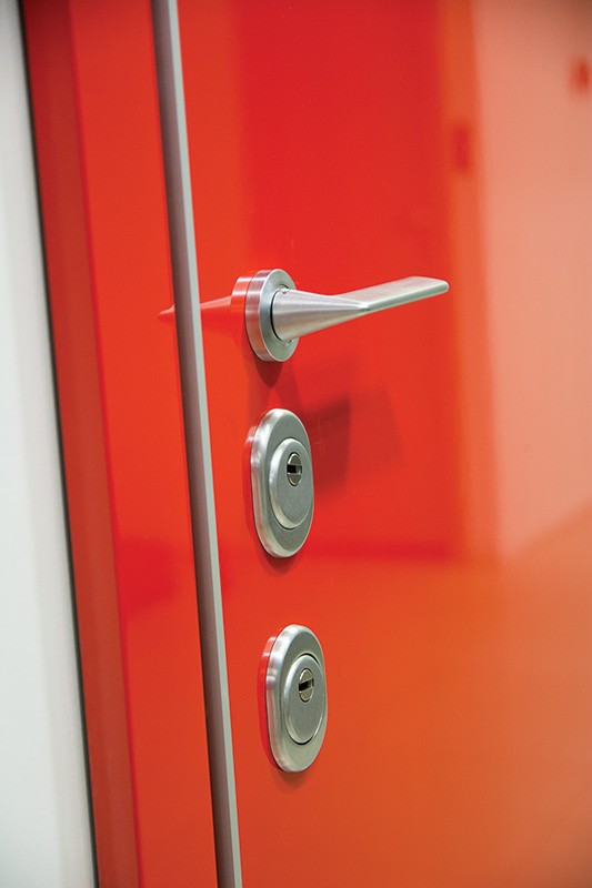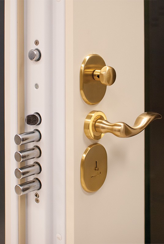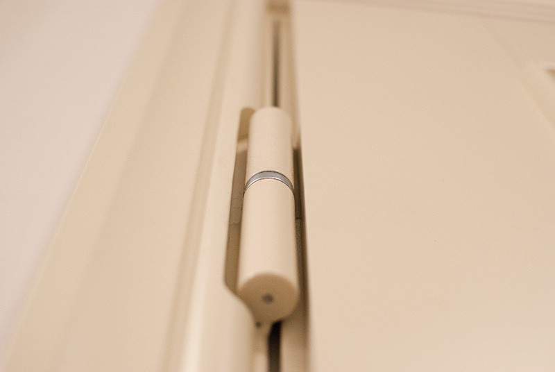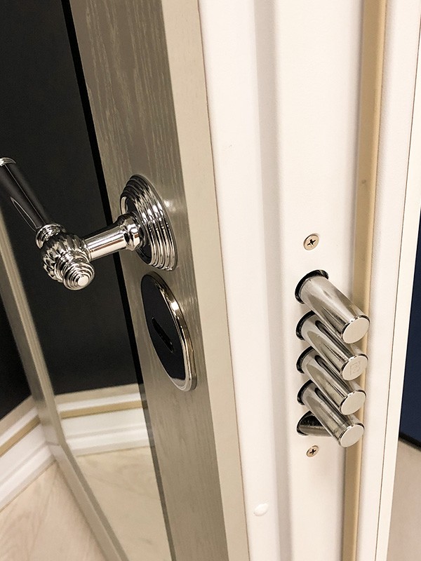 Декоративные втулки (цвет хром) для отверстий под: противосъемные штыри (в петлевой части коробки), вертикальные приводы (в верхней и нижней части коробки).