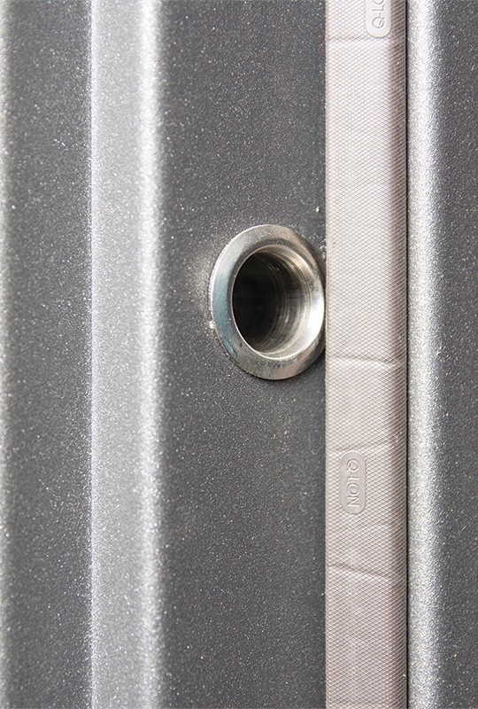 3 контура уплотнения: на составном коробе 2 D-образных уплотнителя, на полотне 1 V-образный нейлоновый уплотнитель.